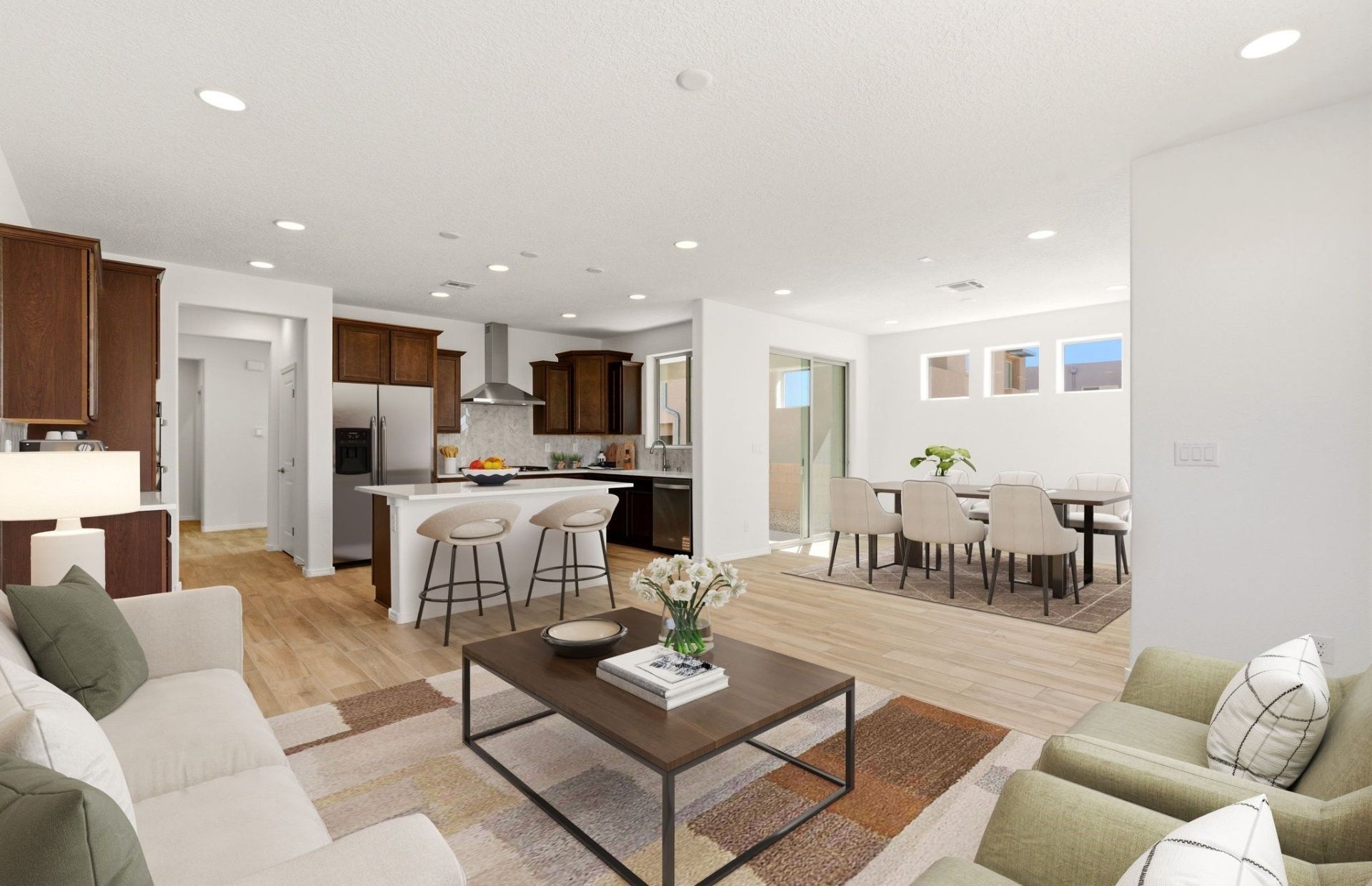 This never lived in new construction home is ready now! Our very popular Ocotillo home features the owner's suit on the main level. 2 nice-sized secondary bedrooms upstairs as well as a loft area. Enjoy your morning breakfast or evening dinner on the large, covered patio. Low maintenance living so you feel like you can lock and go. Plant your fruits or vegetables at the community garden. Close to all conveniences with 7 minutes to the mall and 3 minutes to the highway for an easy commute.