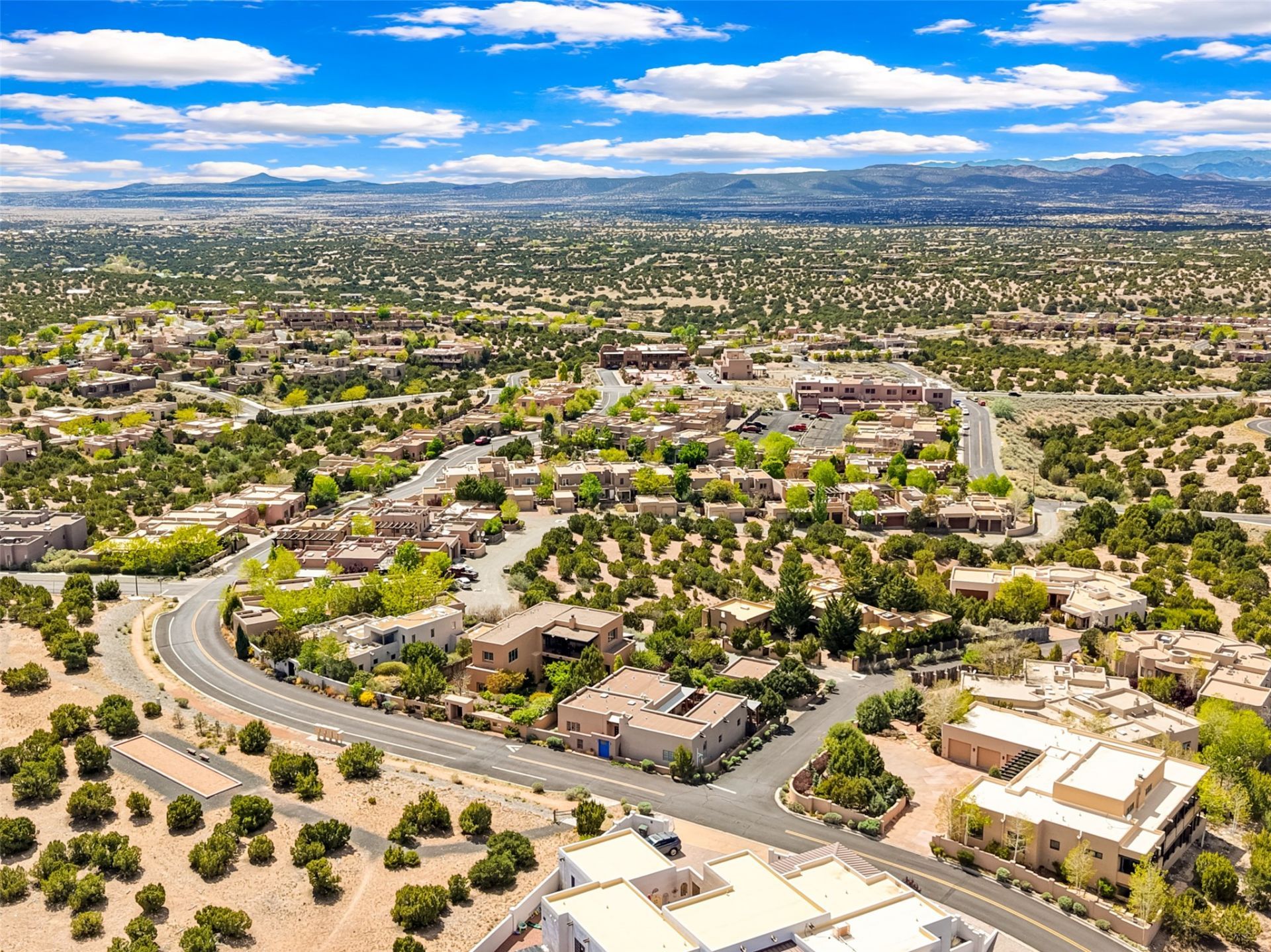 Located in the highly desirable Aldea Santa Fe community, just 15 minutes from downtown, this thoughtfully designed residence offers over 2,100 square feet of refined living space set on a generous 0.22-acre lot. The home unfolds around a hacienda-style courtyard, where three sets of French doors create a seamless indoor-outdoor connection and invite in natural light throughout the day. Inside, architectural details such as vigas, corbels, concrete flooring, and a wood-burning kiva fireplace establish a warm, grounded aesthetic. The layout includes two bedrooms and two baths, anchored by a spacious primary suite with a walk-in shower and serene garden outlooks framed by elegant shutters. A gallery hall with a sitting area adds a sense of quiet transition, while a second living area offers flexibility as a potential third bedroom, studio, or media space. The grounds are a true highlight?Asian-inspired gardens with drip irrigation create a tranquil, curated landscape complemented by mountain views. Modern comforts include in-floor radiant heating, mini-splits for cooling, and designer blackout window coverings for privacy and ease. A detached one-car garage completes the property. Quarterly HOA dues of $563 cover common area maintenance, as well as access to community amenities including a center, tennis courts, and walking trails?enhancing both lifestyle and convenience in this distinctive Santa Fe setting.