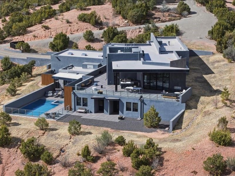 Set against the soulful backdrop of Santa Fe's high desert, this exceptional custom residence is more than a home?it's an experience. From the moment you arrive, a quiet sense of arrival takes over, where architecture, landscape, and light exist in perfect harmony?framed by breathtaking 360-degree views of the surrounding mountain ranges. Thoughtfully designed by renowned architect Craig Hoopes and masterfully built by luxury builder Anthony Odai this home is a true collaboration of vision and craftsmanship. Step inside and you're immediately drawn to the effortless blend of timeless design and elevated finishes. Hand-applied plaster walls, rich natural textures, and carefully curated materials create a warm, refined atmosphere that feels both luxurious and deeply inviting. Expansive living spaces flow seamlessly, designed for both intimate moments and unforgettable gatherings, while walls of glass capture the ever-changing sky and panoramic mountain vistas from every angle. At the heart of the home, the kitchen becomes a natural gathering place?equal parts functional and inspiring?featuring custom-designed cabinetry crafted by renowned Italian company Poliform and a suite of precision appliances by German manufacturer Gaggenau. The space opens beautifully to living and dining areas that encourage connection and conversation. The primary suite is a true retreat, where privacy and serenity take center stage. Wake to soft desert light, unwind in spa-like surroundings, and step outside to experience uninterrupted views and the stillness that defines Santa Fe living. Additional spaces throughout the home offer flexibility for guests, creativity, or quiet reflection. Outdoors, the lifestyle truly comes to life. Enjoy quiet mornings with coffee as the sun rises over distant peaks, host evenings under star-filled skies, or simply take in the sweeping vistas that surround you. Here, the connection to nature is constant and grounding. This is a home designed not just to be seen, but to be felt, a rare opportunity to own a one of a kind property that captures the essence, beauty and spirit of Santa Fe living. (Images of Wine room include virtual staging. Wine racks and contents depicted are not present in the house)